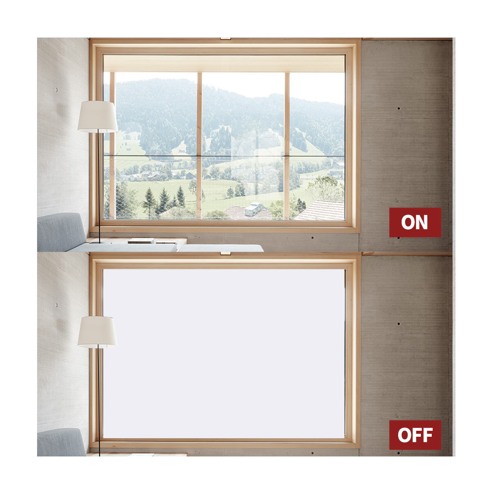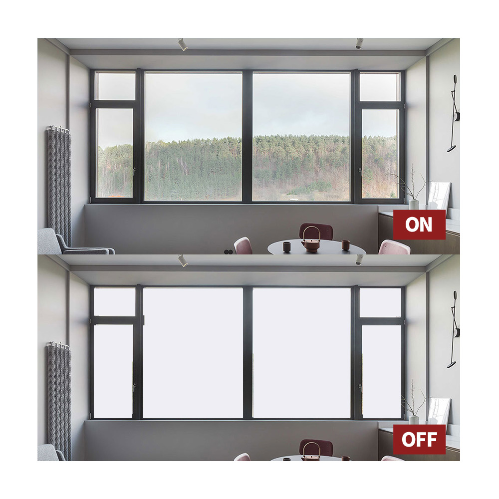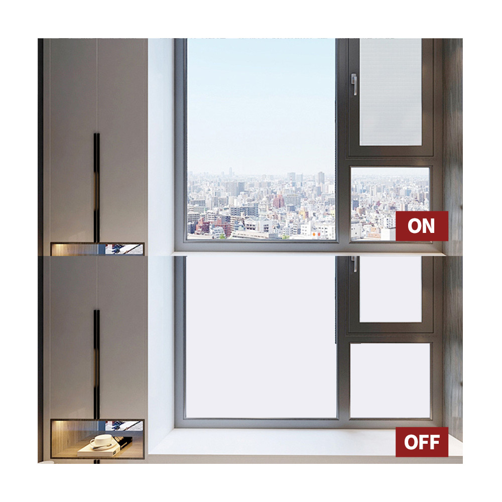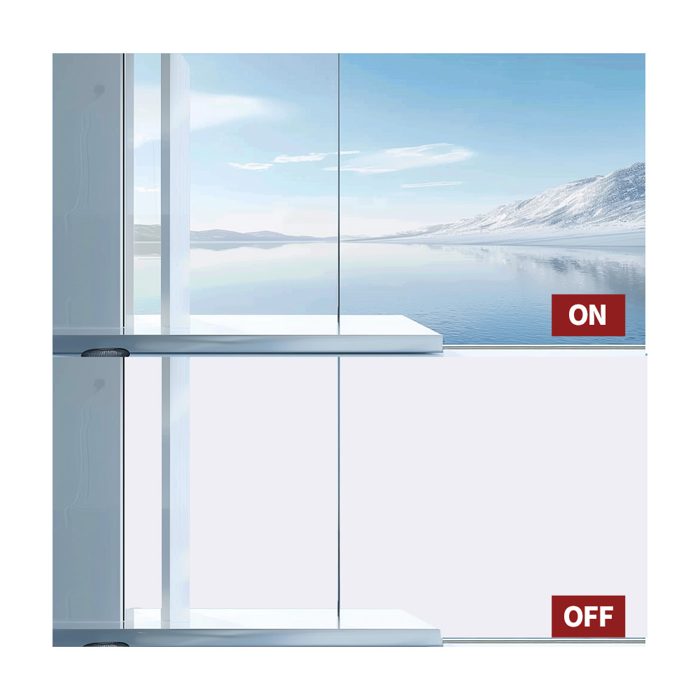 Das Funktionsprinzip ist elegant in seiner Einfachheit und liegt auf dem Weg zu flüssigen Kristallen auf einem elektrischen Feld. Wenn das Pellicola nicht in Betrieb ist (Zustand AUS), sind die Moleküle der flüssigen Kristalle im Inneren des Eises nicht mehr in Ordnung. In dieser Konfiguration ist die Lichtdurchlässigkeit, mit der die Folie durch eine intensive Diffusion (Streuungseffekt) durchleuchtet wird, durchsichtig, der Gegenstand undurchsichtig oder zerkleinert. Dieser Zustand garantiert sofortigen Datenschutz und wirksame Sonneneinstrahlungsdämpfung. Verwenden Sie eine Wechselstrom-Unterspannungsquelle (gemeinsam mit 48 V Wechselstrom oder 65 V Wechselstrom), um die Leitungsschichten zu durchqueren (Zustand EIN), wenn ein elektrischer Boden erzeugt wird. Dies ist der Grund für die Verbindung mit den Kristallflüssigkeitsmolekülen direkt in Ihre Richtung.